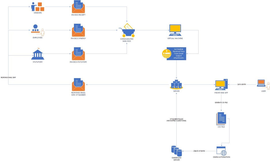Automated Notifications: Sends VP numbers back to the original senders, confirming receipt and processing of invoices.