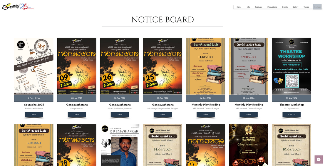 The Rangasourabha website is designed to celebrate and showcase the organization’s rich cultural legacy and its contributions to Karnataka's theatre scene. As an engaging digital platform, it connects participants, patrons, and enthusiasts while providing comprehensive resources for the performing arts.